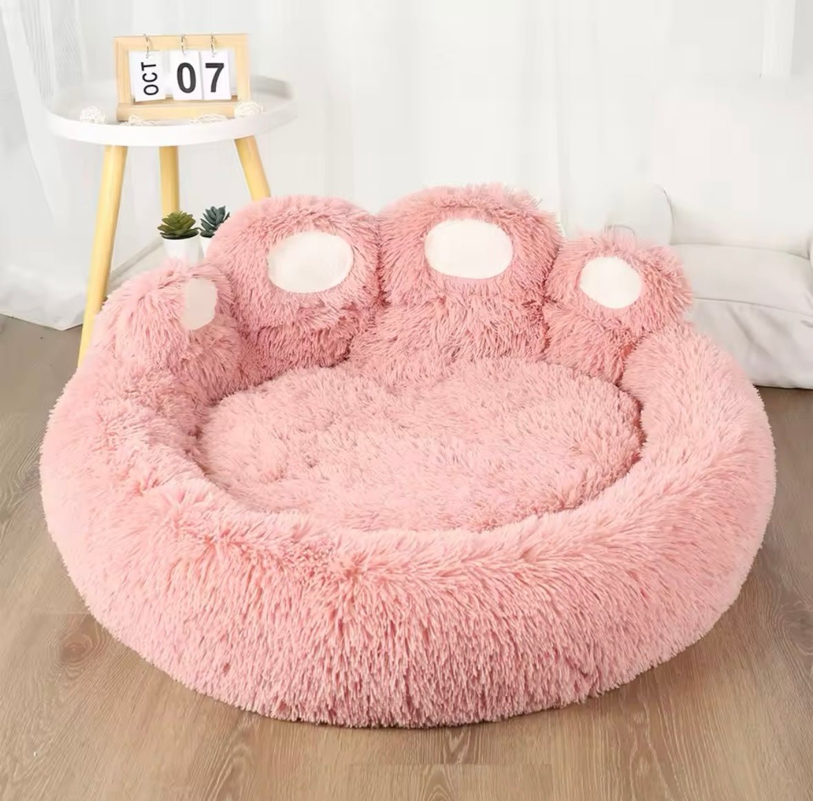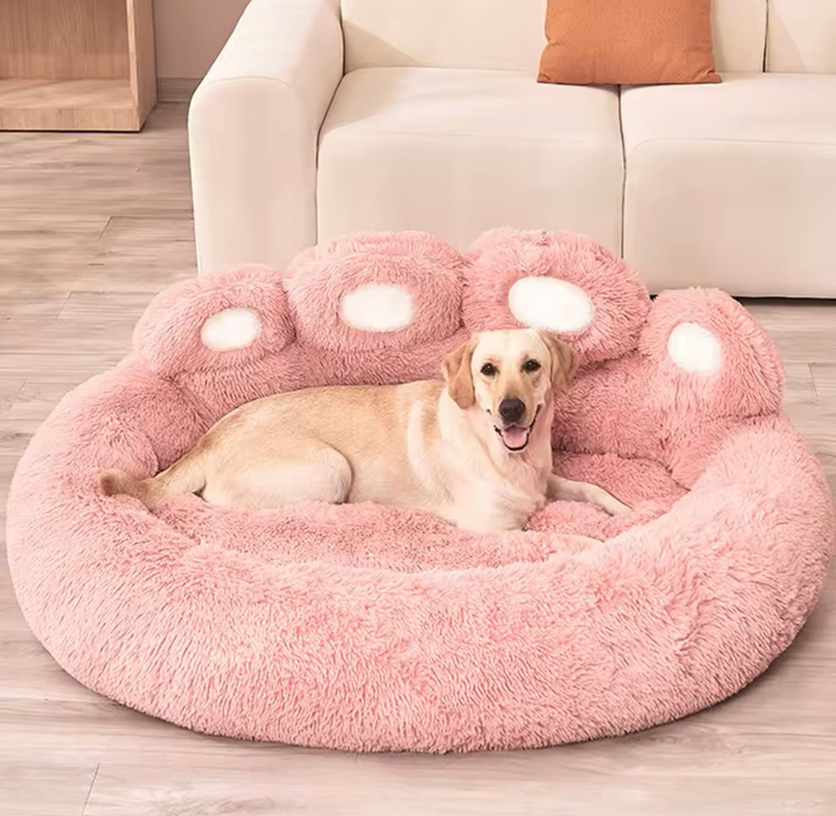 מיטת פרווה ורודה בצורת כף רגל לכלבים – עיצוב מתוק ומפנק | 4 גדלים לבחירה